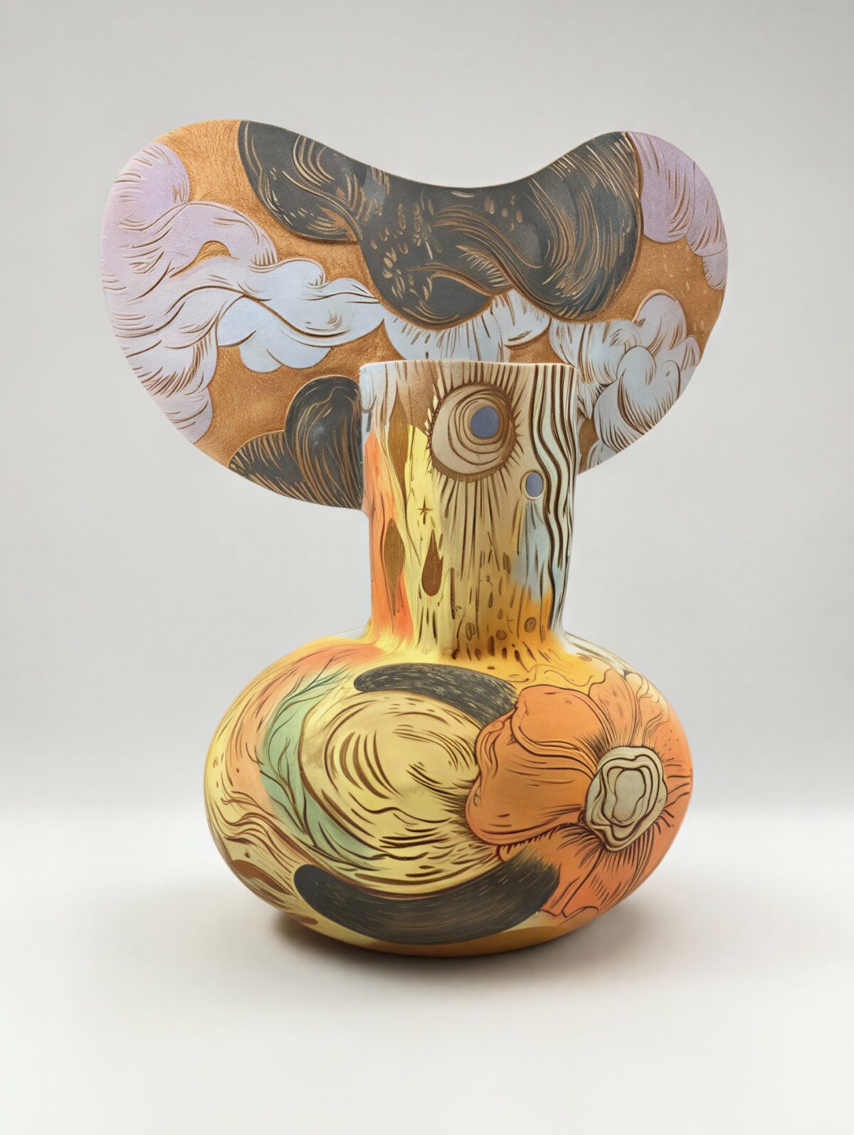 Luis Adelantado presents El pie del bosque, the fourth solo exhibition by Lamarche–Ovize at the gallery. The duo’s practice moves between drawing, ceramics and installation, using these media to build open-ended narratives in which material and symbolic elements are closely linked. The exhibition brings together drawings, paintings, screenprints and sculptural works conceived as fragments of a larger story. Rather than illustrating a fixed plot, the works use narrative as a way of thinking through objects, images and their relationships. The forest evoked in the exhibition is not a naturalistic setting but a symbolic and expansive terrain shaped by plant, animal and hybrid forms. The show draws on historical decorative traditions and bestiary-like imagery while also reflecting a contemporary interest in the connections between the living, the ornamental and the narrative. The sculptures, positioned between the functional and the fantastical, reinforce this ambiguity and extend the visual language of the works on paper. The installation invites a slow, attentive reading in which each piece acts as a point of support for a broader story.
